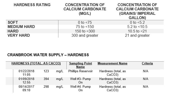 Water containing low concentrations of calcium or magnesium is called soft water. Municipalities with soft drinking water often have higher incidences of water pipe corrosion (low pH). The degree of hardness in drinking water is commonly classified in terms of its concentration of calcium carbonate: