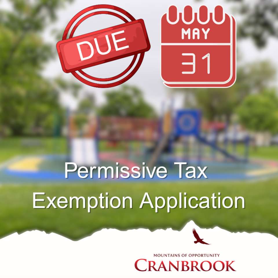 Learn more about permissive tax exemptions on the City’s website @ https://cranbrook.ca/our-city/city-departments/finance/municipal-grants.