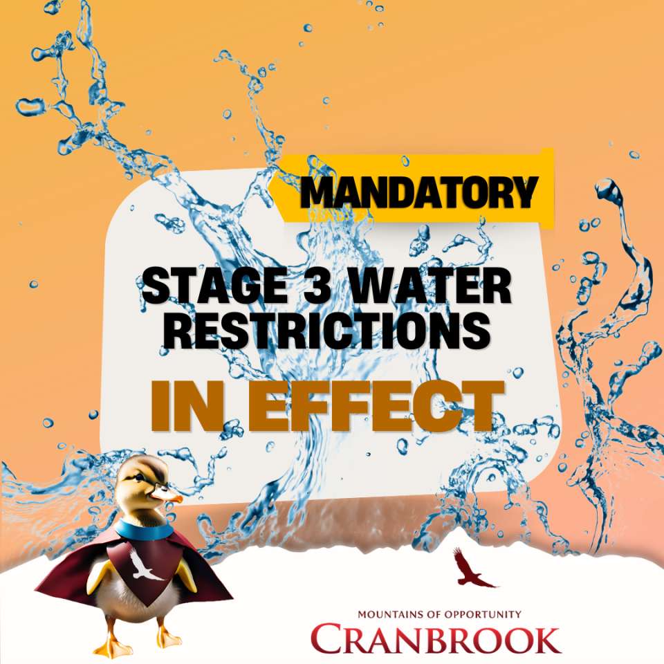 Cranbrook, BC (October 2, 2025) – Effective Saturday, October 4, 2025, the City of Cranbrook is mandating the move to Stage 3 watering restrictions until further notice.