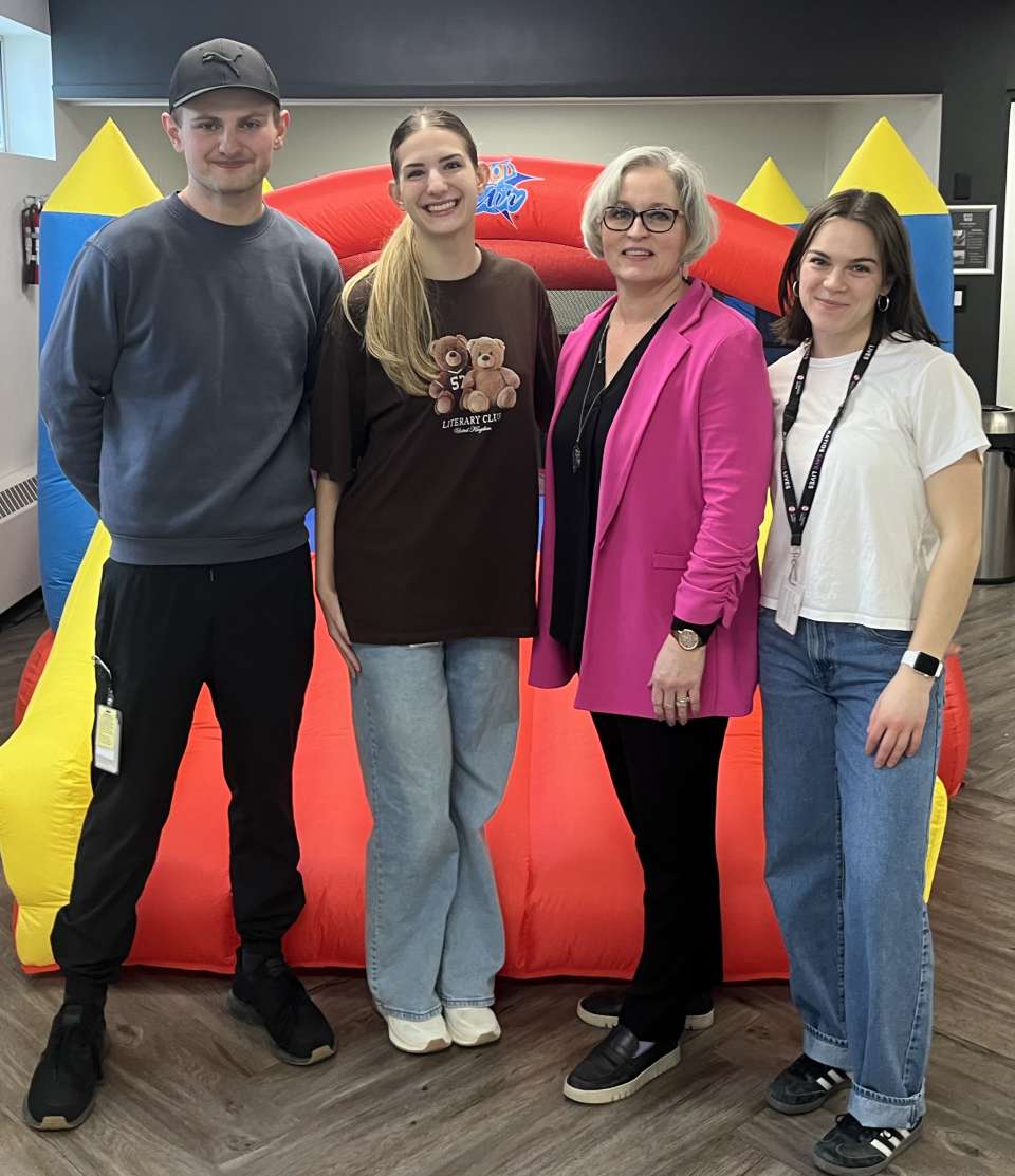 Photo: Councillor Lynnette Wray (second from right) with participating College of the Rockies students Andreas (left), Olivia (second from left), and Nadine (right) during the Natanik: Day of Sunshine event at the Key City Theatre on February 13, 2026. City of Cranbrook photo.