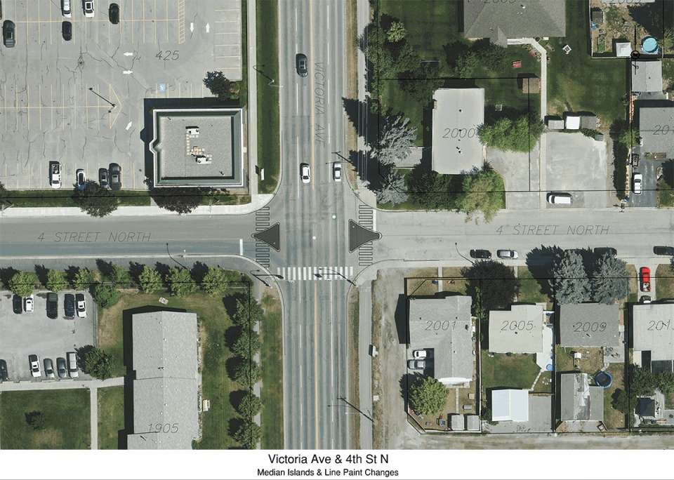 Along Victoria Avenue, changes are planned to be made to 12th Street North, 8th Street North, and 4th Street North, where new concrete medians will guide traffic to right-in, right-out movements only. Access to the A&W from Victoria Avenue will also change, with no more left turns in or out due to new concrete barriers. These intersections will become right-hand turn in and turn out only. These updates are being made to improve safety and help keep traffic moving more smoothly.