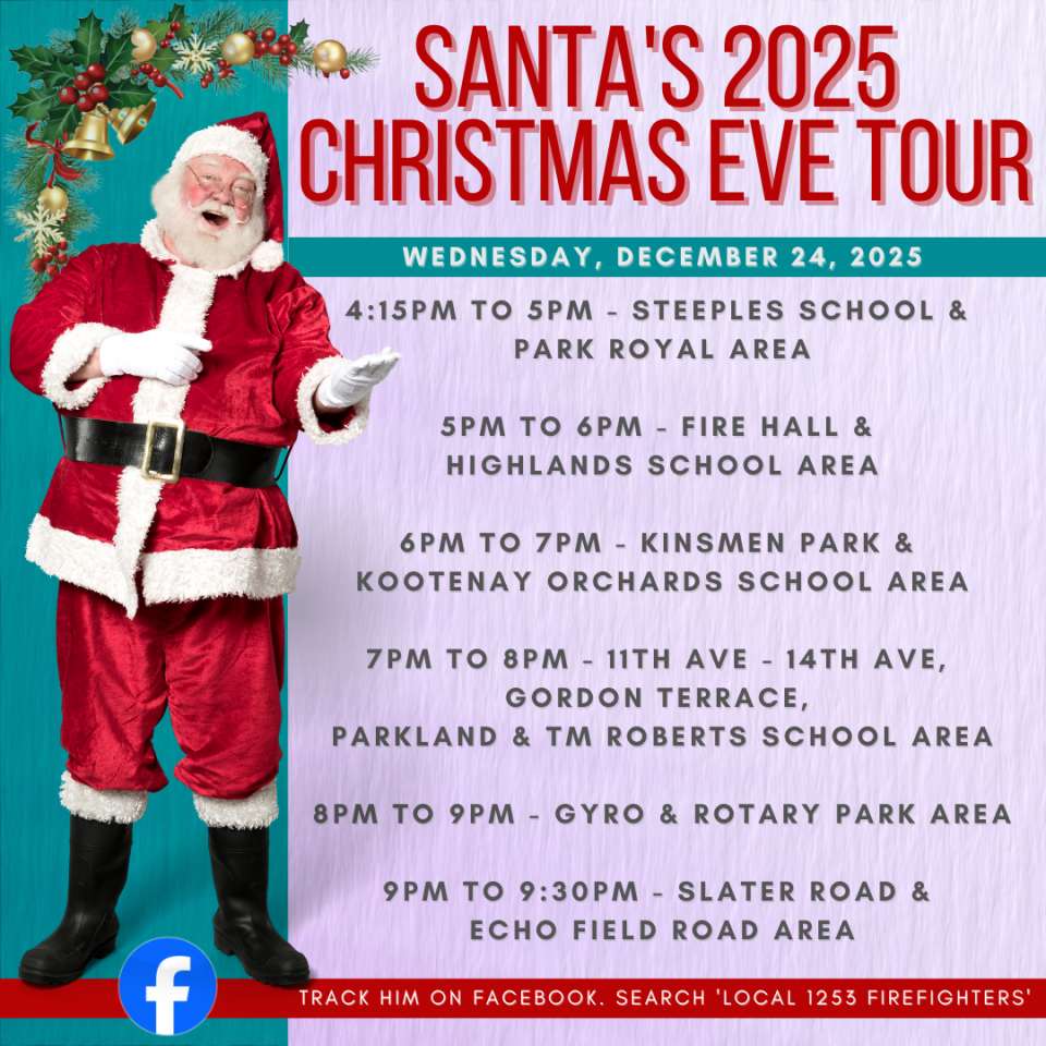 Cranbrook, BC (December 17, 2025) – Direct from the North Pole, Santa Claus has officially confirmed his annual Christmas Eve tour of Cranbrook – and his magical route is all set thanks to the support of Cranbrook Fire & Emergency Services.