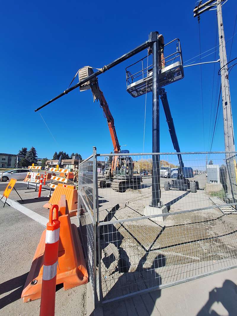 The electrical contractor has successfully completed reinstating the new traffic lights, cameras, and new wiring at the intersection.