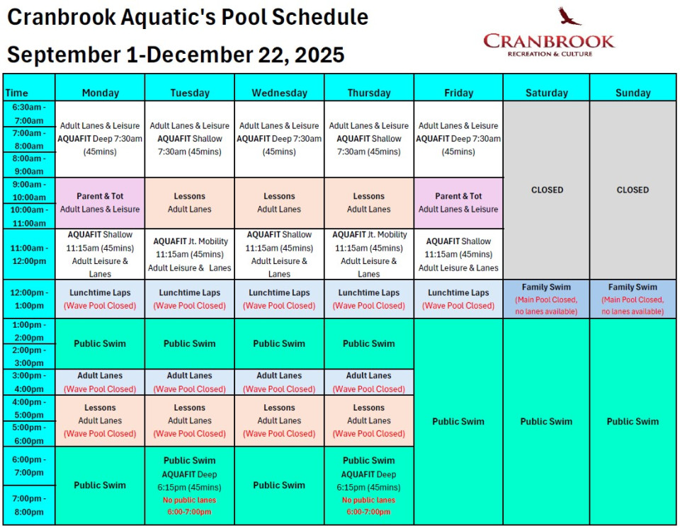 Swim Lessons: Organized instructional programs and lessons are being provided. Priority for space will be given to our instructional programs therefore most of the facility is not accessible for public use. There is no access to the wave pool, and much of the lane pool will be occupied as well. The slide and other features are left off.