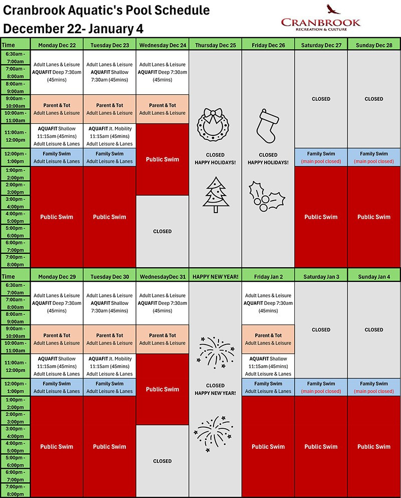Public Swim: All facilities will be open including the main pool, wave pool, hot tub, steam room, and sauna. Other water features will be open and running periodically throughout the swim as well, including the waves, rain drop, and slide.