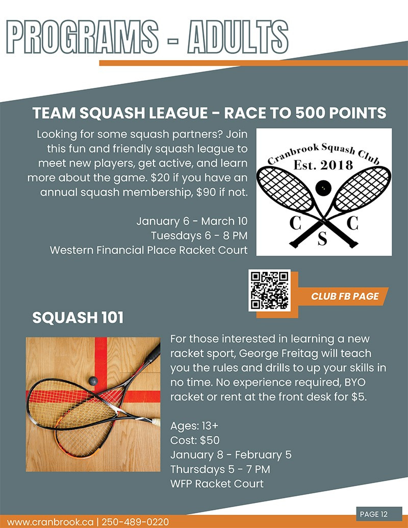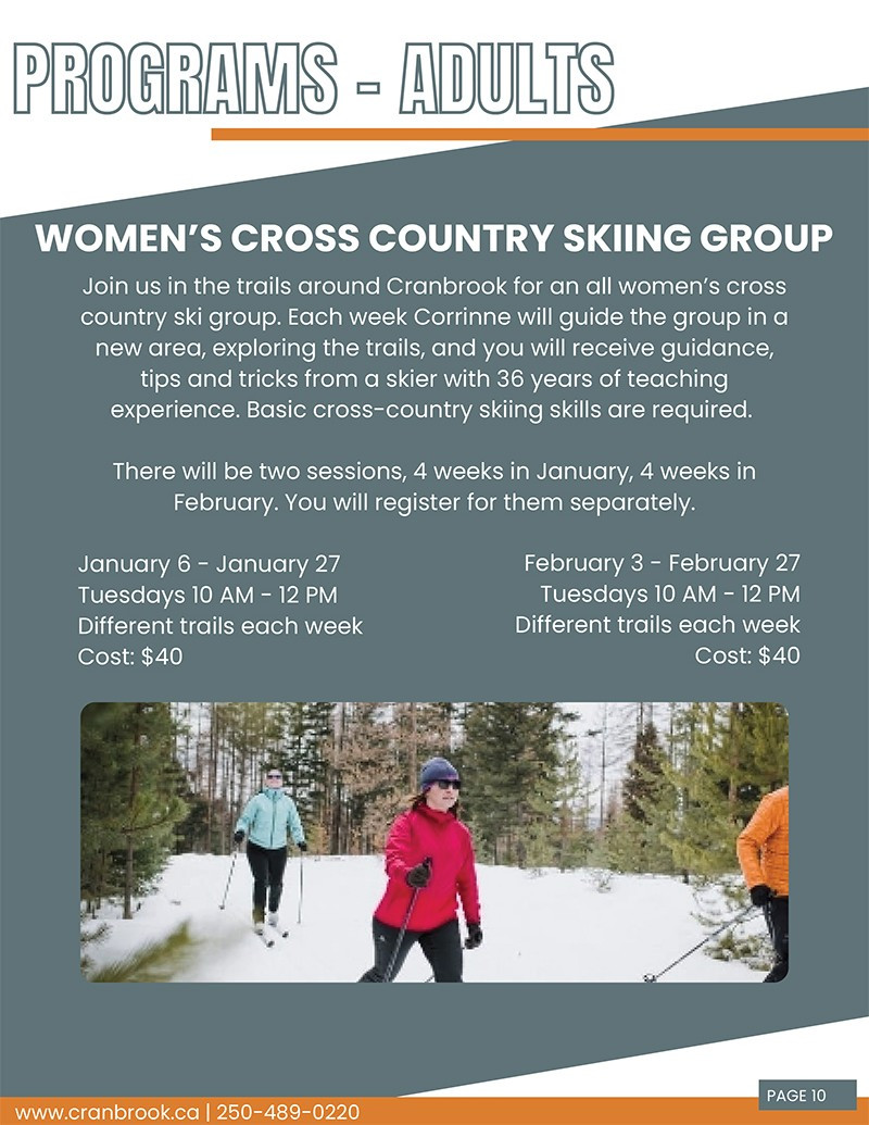 This page: https://cranbrook.ca/our-city/city-departments/leisure-services/programming/adult-programs