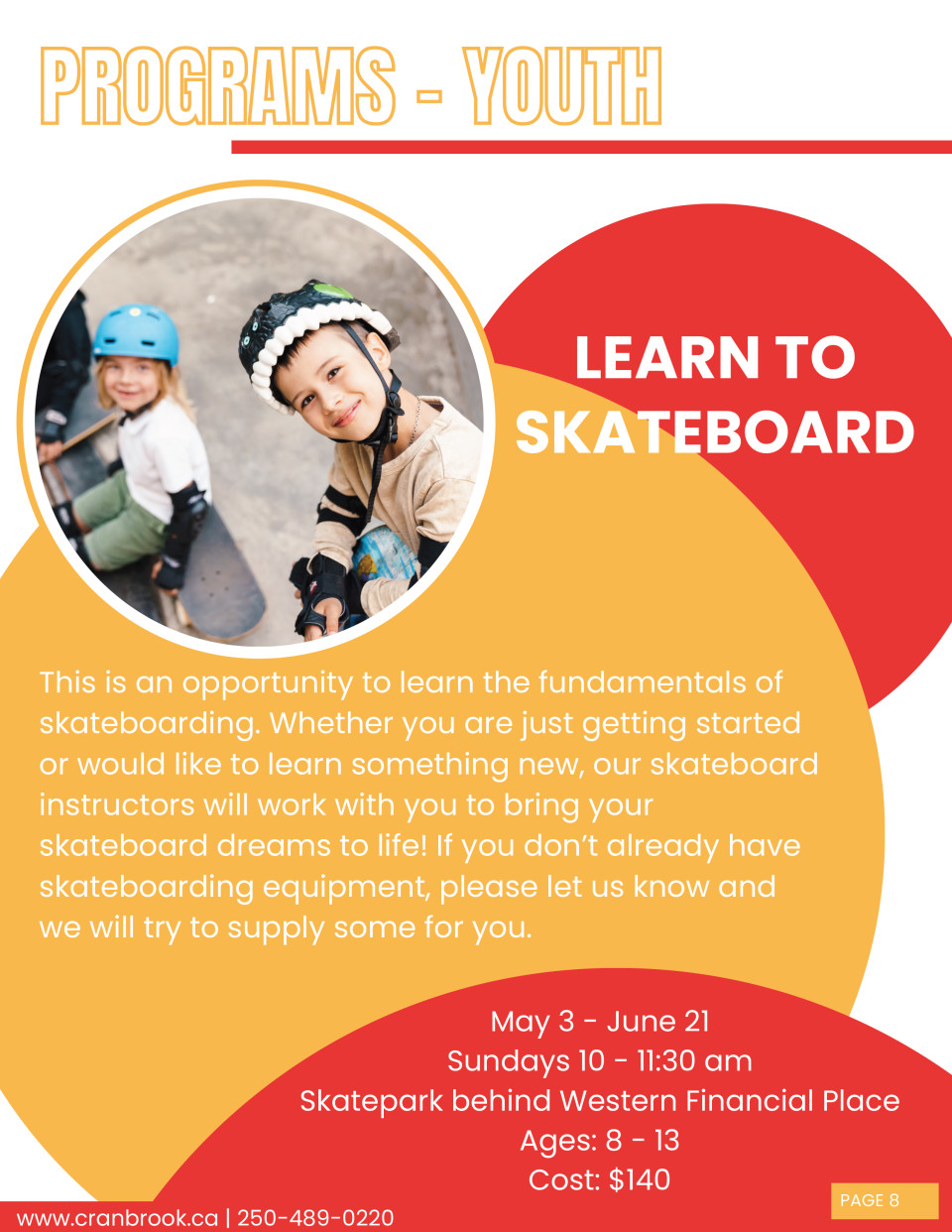 This page: https://cranbrook.ca/our-city/city-departments/leisure-services/programming/youth-programs